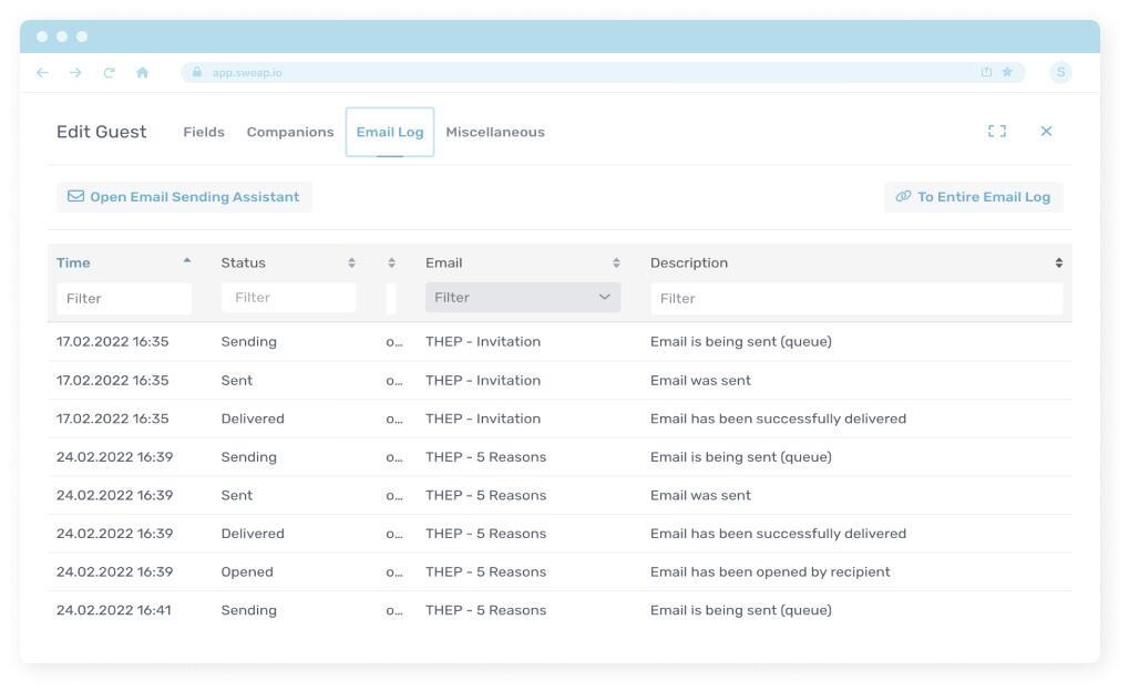 Im Sweap E-Mail Log siehst du genau, wen du schon mit welcher E-Mail Kampagne kontaktiert hast.