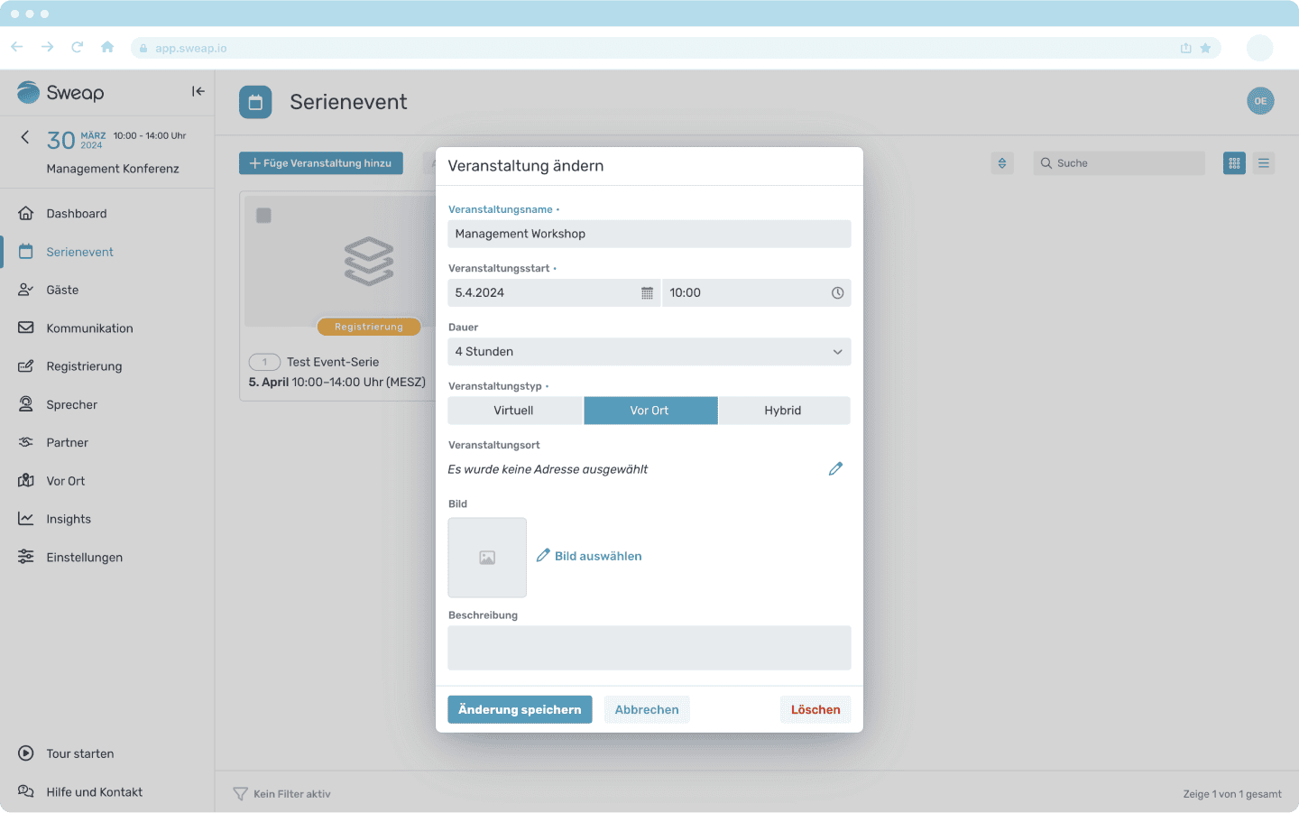 Mit den Event-Serien von Sweap, kannst du zahlreiche Sessions in einem Event veranstalten.
