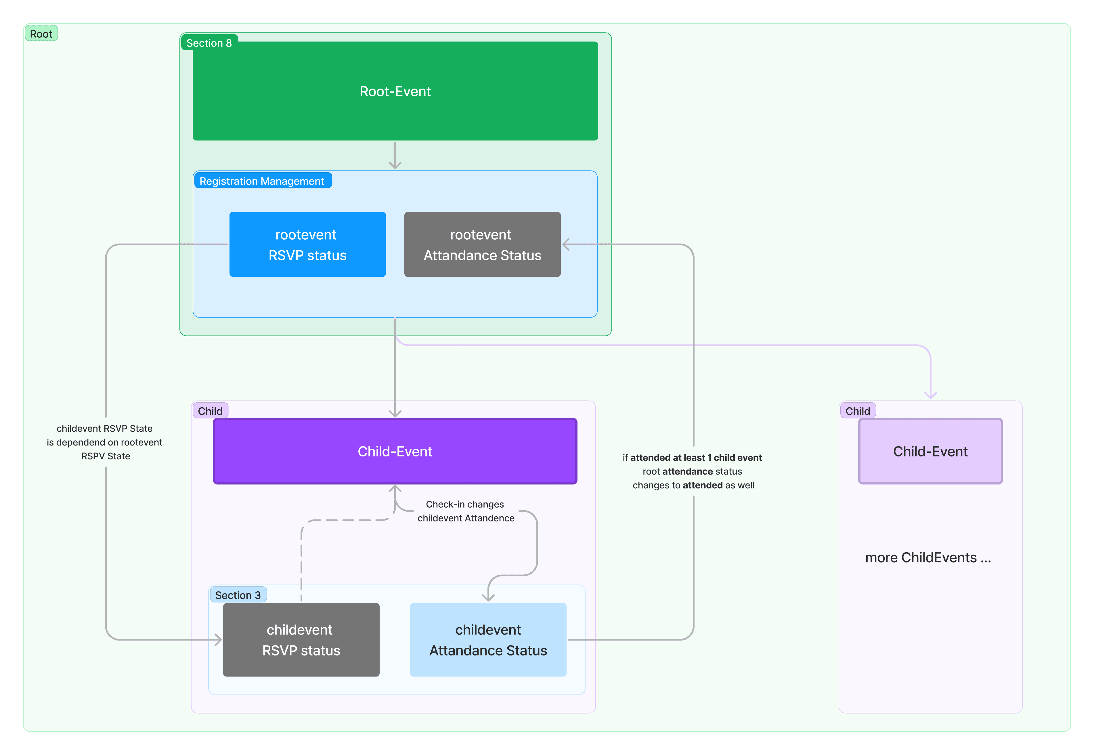 Im Vergleich zu Einzelevents, arbeiten Event-Serien mit einem Hauptevent und zahlreichen Sessions.