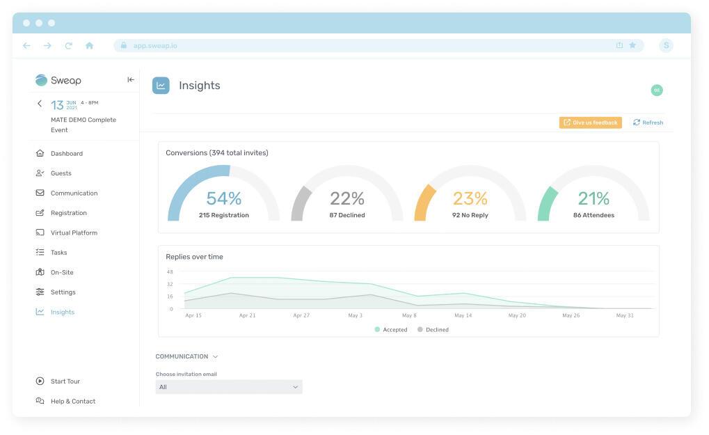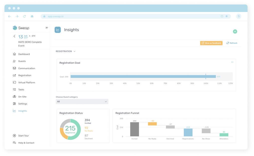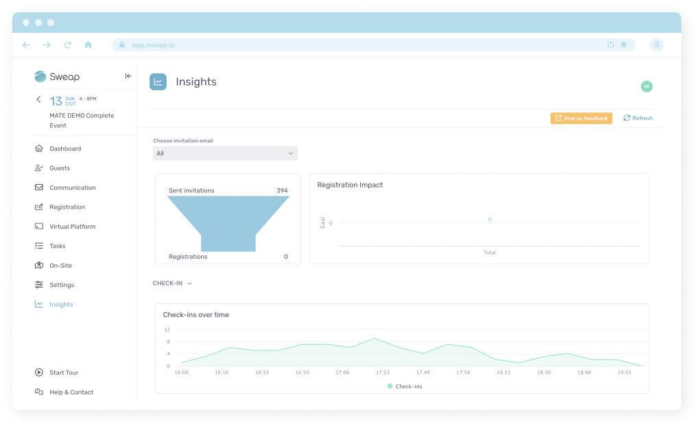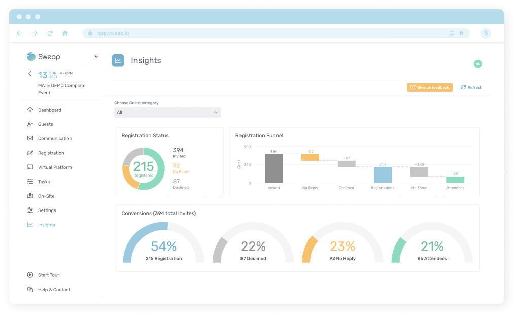 So wie sich die Definition von Veranstaltungserfolg weiterentwickelt hat, so haben sich auch die Instrumente zu seiner Messung und Bewertung weiterentwickelt. Wir freuen uns, die dritte unserer aufregenden neuen "Sweap 3"-Funktionen ankündigen zu können - unsere neue Insights-Funktion.