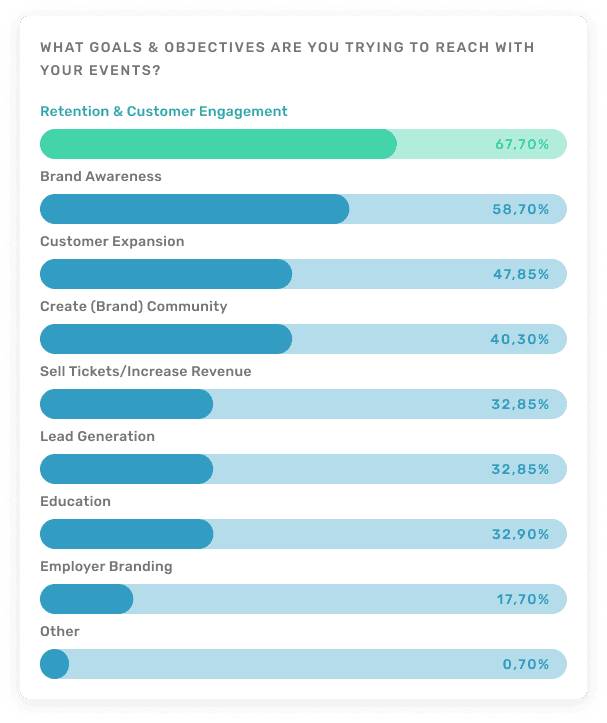 Jede der oben genannten Veranstaltungsarten verfolgt unterschiedliche Ziele im Event Marketing. Einige Eventtypen eignen sich am besten, um die Markenbekanntheit und den Wiedererkennungswert zu steigern und die Suchmaschinenoptimierung zu verbessern. Andere eignen sich am besten für den Aufbau von Markenautorität, indem sie CxOs als Vordenker der Branche und Spezialisten etablieren. Wieder andere sind am besten geeignet, wenn die vorrangigen Ziele die Gewinnung von Leads, der Abschluss von Verkäufen und der Ausbau von Geschäftsnetzwerken sind.