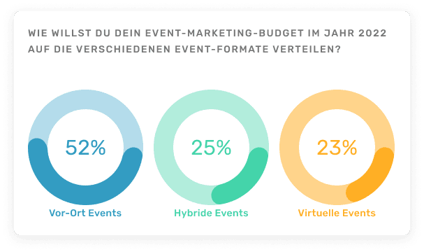 Mehr als 50 % der Budgets für Event Marketing werden in diesem Jahr für Live-Events ausgegeben, was eine dramatische Veränderung gegenüber den von virtuellen und hybriden Veranstaltungen dominierten Jahren 2021 und 2020 bedeutet. Die überwiegende Mehrheit der Event-Profis organisiert derzeit Live-Events, die sie als grundlegend für ihre übergreifenden Marketingstrategien betrachten.