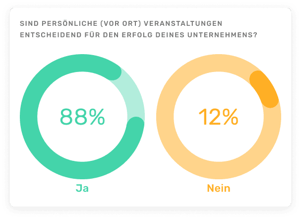 88% der Event Marketer*innen sagen, dass persönliche Veranstaltungen entscheidend für den Erfolg ihres Unternehmens sind. (Sweap, 2022)