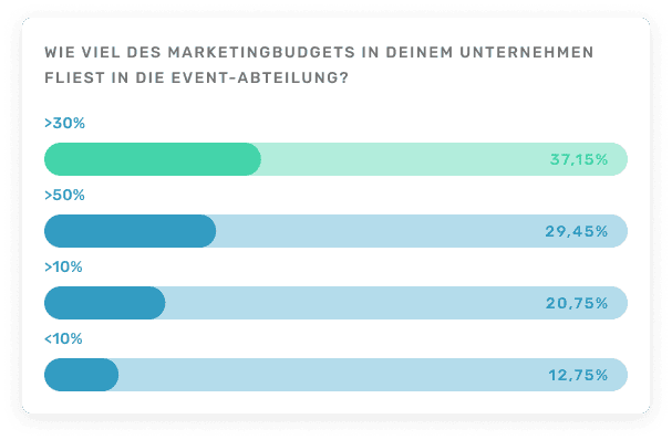 Bei 37,5% der befragten Unternehmen fließt über 30% des gesamten Marketing-Budgets in die Event-Abteilung. (Sweap, 2022)