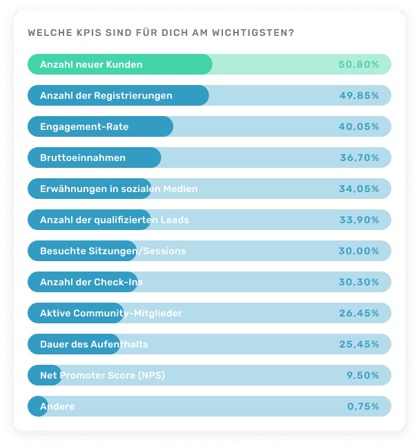 Für 40% der Eventmanager*innen ist die Engagement-Rate eine der wichtigsten KPIS. (Sweap, 2022)