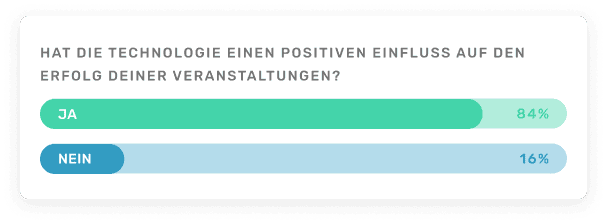 Für 84% der Event Marketer*innen hat Technologie einen positiven Einfluss auf den Event-Erfolg. (Sweap, 2022)