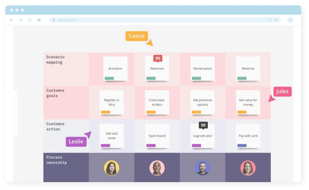Miro ist für die Entwicklung von Event-Konzepten und Ideen und die Festlegung von Zielen von entscheidender Bedeutung, da es kreative Sitzungen wie Recherche, Prototyping, Brainstorming, Skizzieren und mehr ermöglicht.