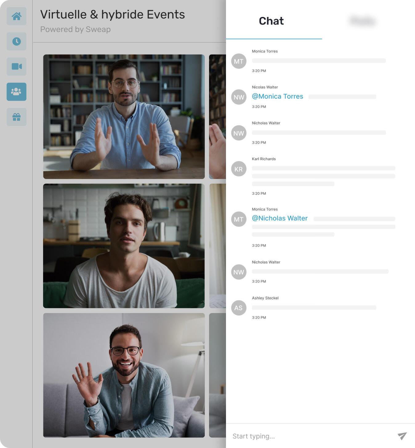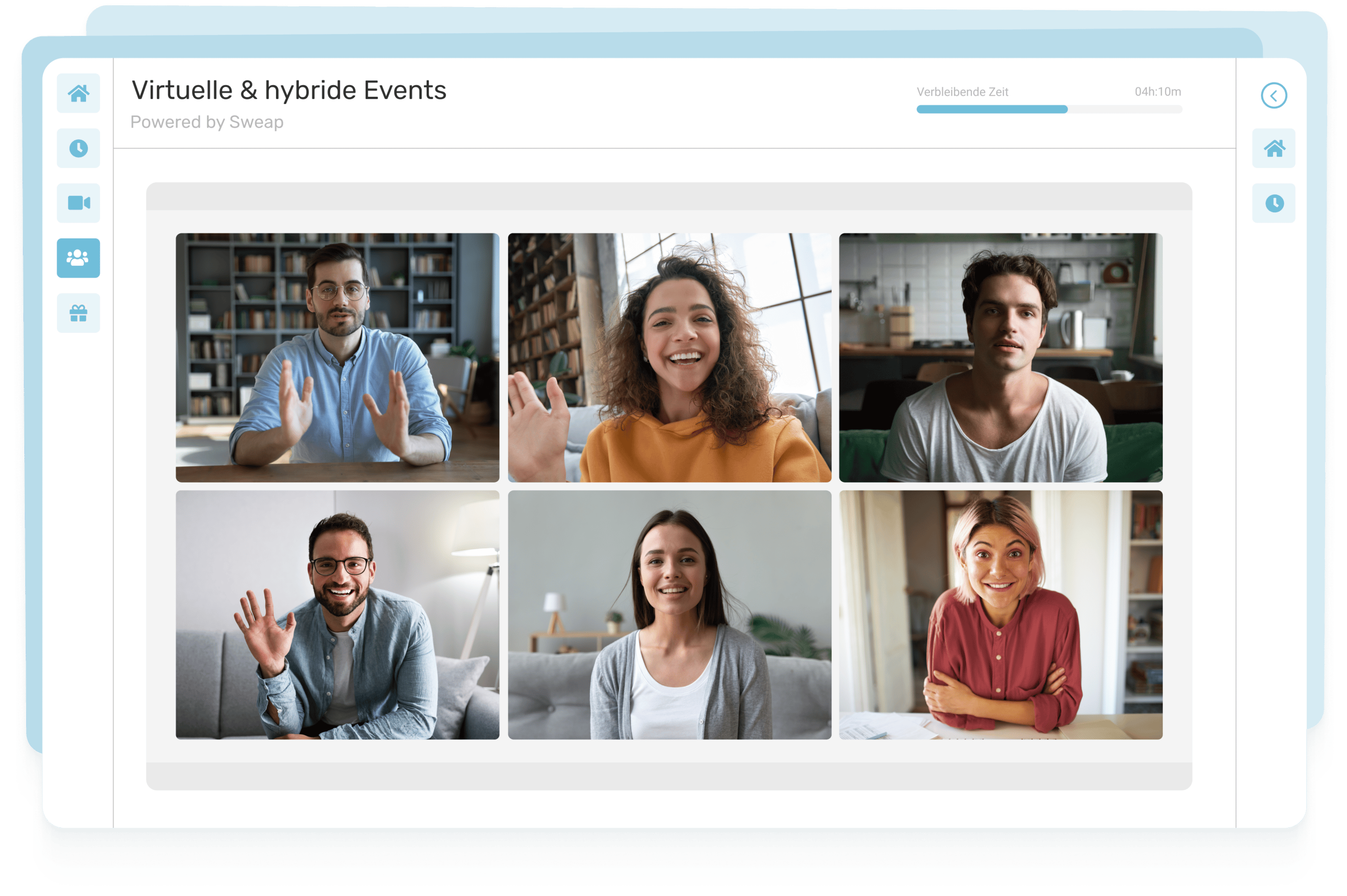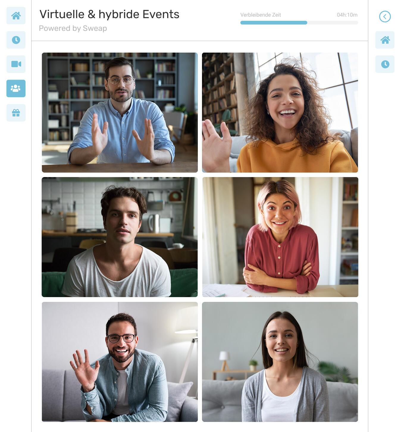 Die Virtual Event Platform von Sweap bietet dir maximale Freiheit: Du kannst verschiedenste Drittanbieter-Tools für Streaming, Chat, Umfragen, Videokonferenzen u. v. m. nahtlos integrieren.