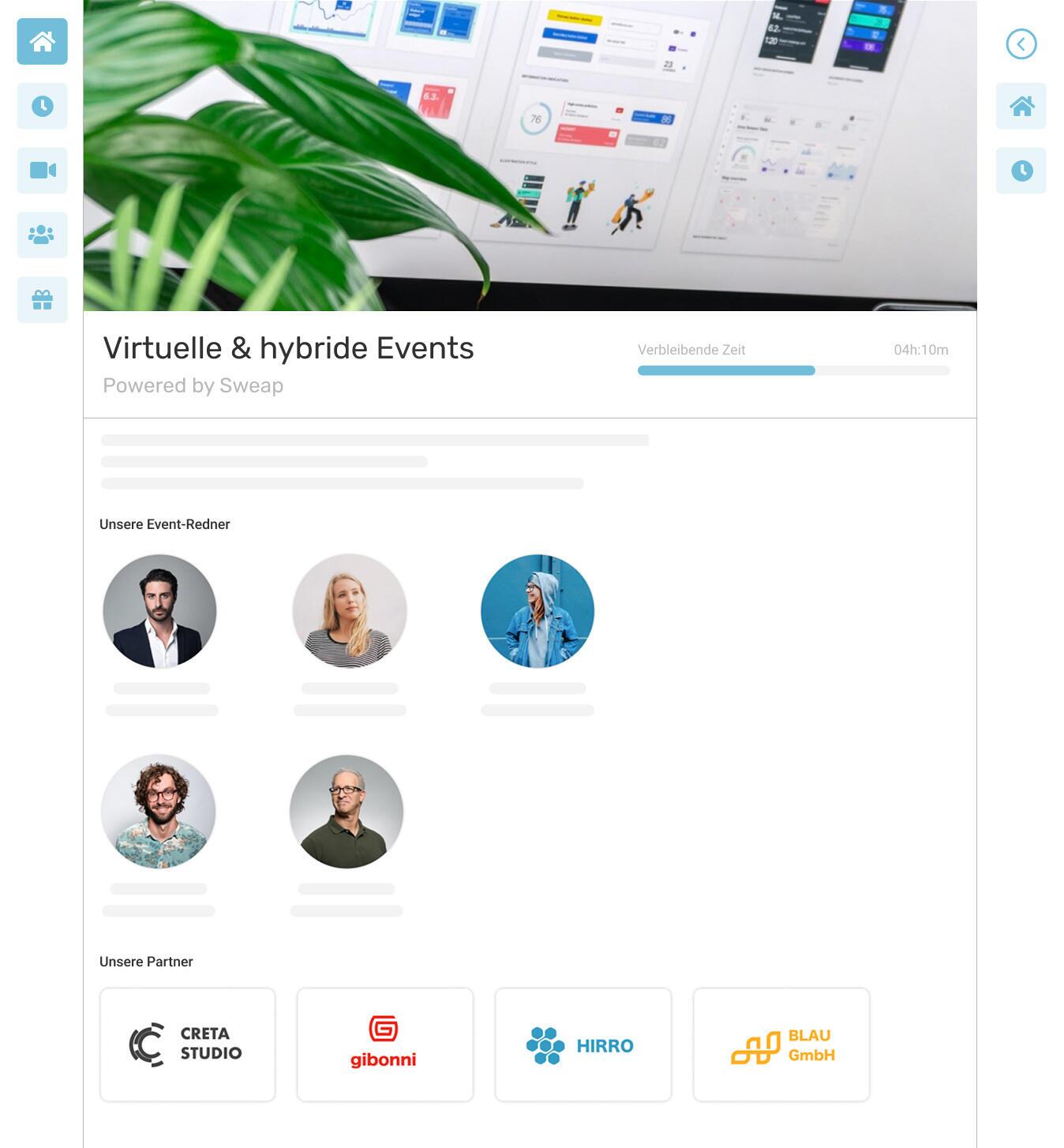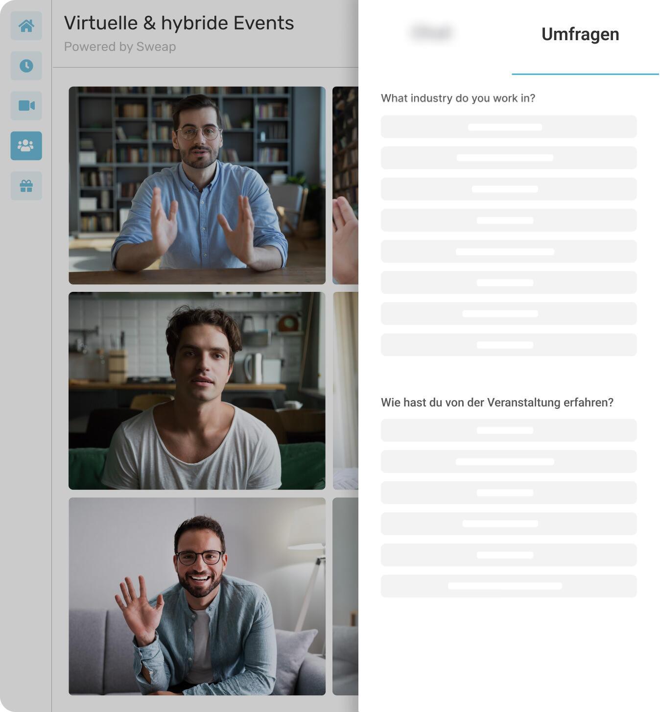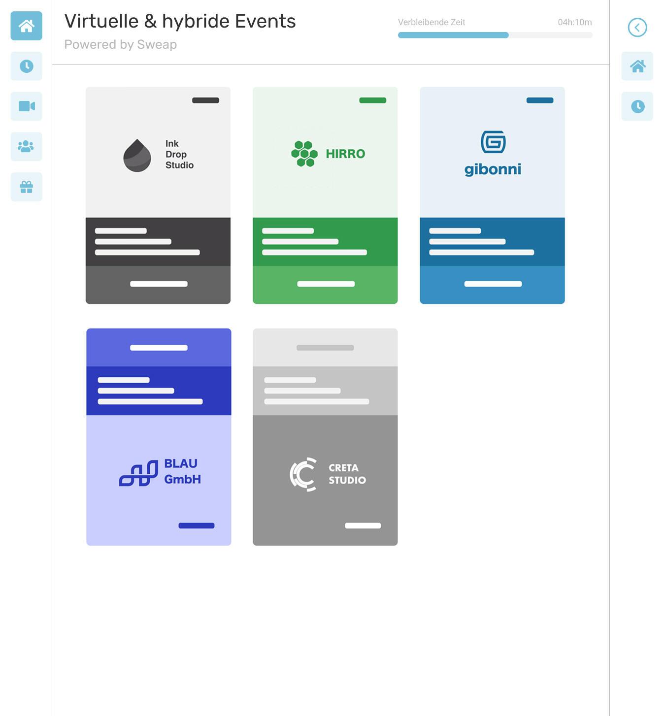 Die Virtual Event Platform von Sweap bietet dir maximale Freiheit: Du kannst verschiedenste Drittanbieter-Tools für Streaming, Chat, Umfragen, Videokonferenzen u. v. m. nahtlos integrieren.