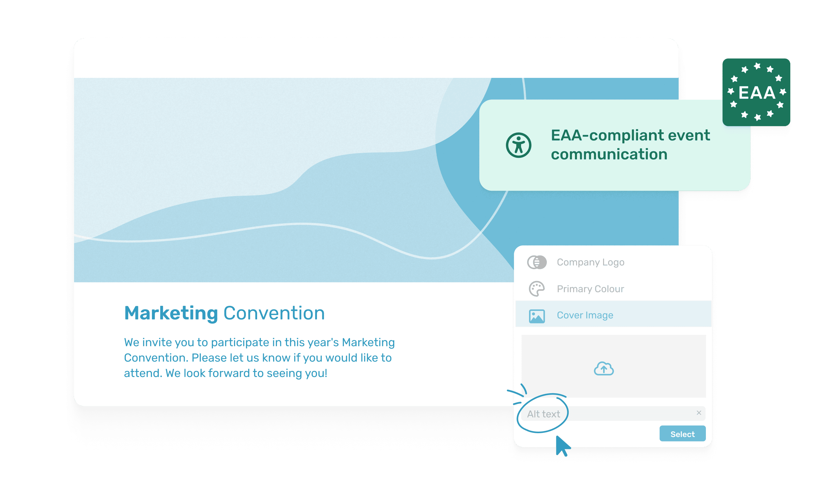 Plan and execute events in compliance with EAA regulations – from invitations to follow-up. Accessible event websites, emails, tickets, and forms guarantee inclusive events.