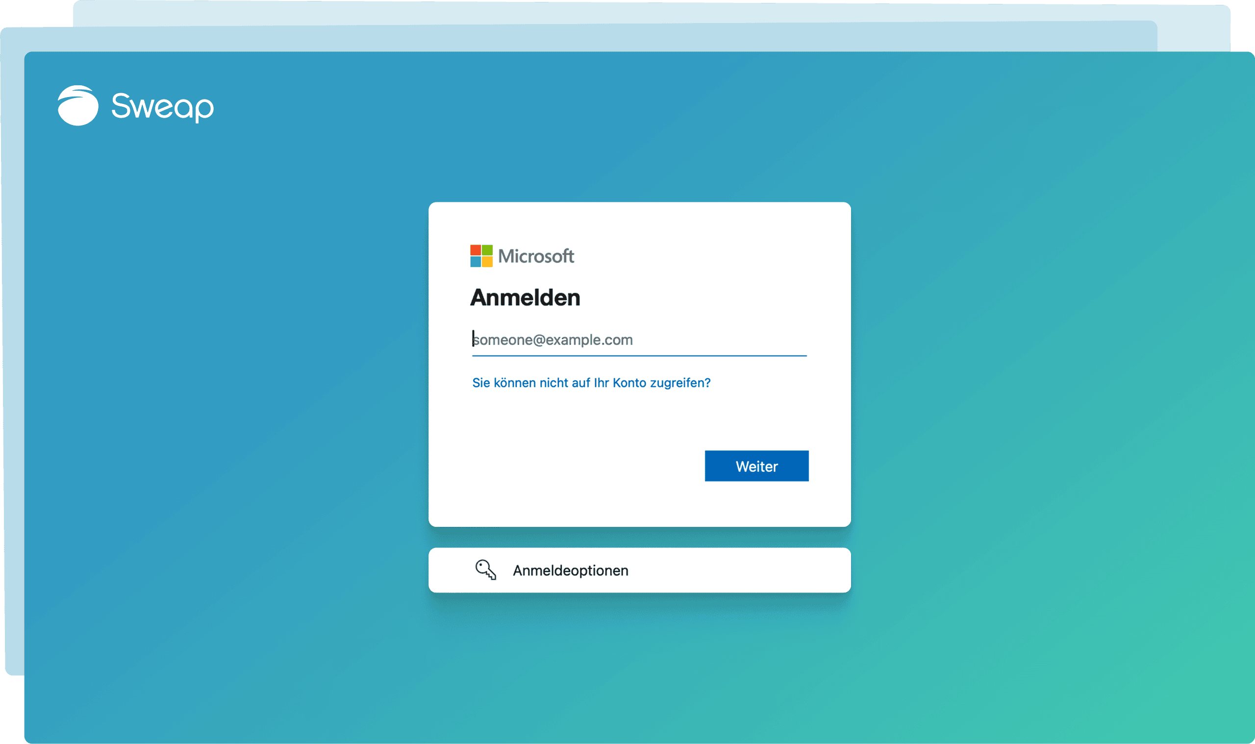 Single sign-on (SSO) enables users to log in to Sweap with login data stored centrally with an identity provider (IDP). If single sign-on is already used with other systems, users can log in to Sweap in the same way. Sweap relies on the widely used OpenID Connect Connect standard.